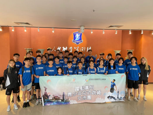 「躍動廣州青少年花式跳繩交流團」由中國香港跳繩體育聯會(繩聯)主辦,大灣區共同家園青年公益基金資助,文化體育及旅遊局支持,40名學生及教練乘坐高鐵,前往廣州進行三日兩夜(4月10至12日)交流及集訓。是次交流團除了讓兩地青少年進行體育交流,更讓本港青少年體驗廣州的多元文化旅遊業,而且了解大灣區升學資訊。