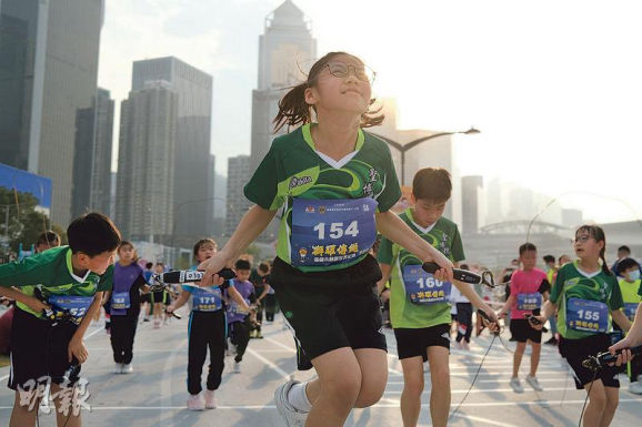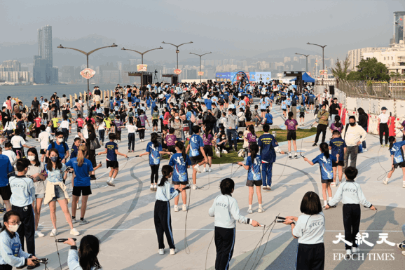 【明報專訊】民政事務總署、國際獅子總會中國港澳303區及中國香港跳繩體育聯會,噚日喺灣仔海濱長廊水上運動及康樂主題區合辦「『獅躍傳繩』青少年花式跳繩嘉年華暨傷健共融創世界紀錄」活動,有約300名中小學生和傷健人士參與,最後合力於15分鐘累積307,239下跳繩,成功打破跳繩世界紀錄。署理政務司長卓永興亦到場見證並為參加者打氣,佢呼籲市民尤其年輕人持之以恒參與體育運動,增強身體機能,鍛煉堅毅意志。