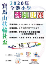 「寶馬山扶輪社」自年開始,積極推廣「以繩育人」計劃,通過跳繩運動教育學生,培養堅毅不屈的精神。 本社 茲定於年月日星期六上午時下午時,假 香港理工大學西九龍校園舉行「寶馬山扶輪社盃全港小學跳繩比賽」,為全港小學生提供一個交流的平台,令跳繩運動更普及化,學生亦有機會多接觸一些健康活動。