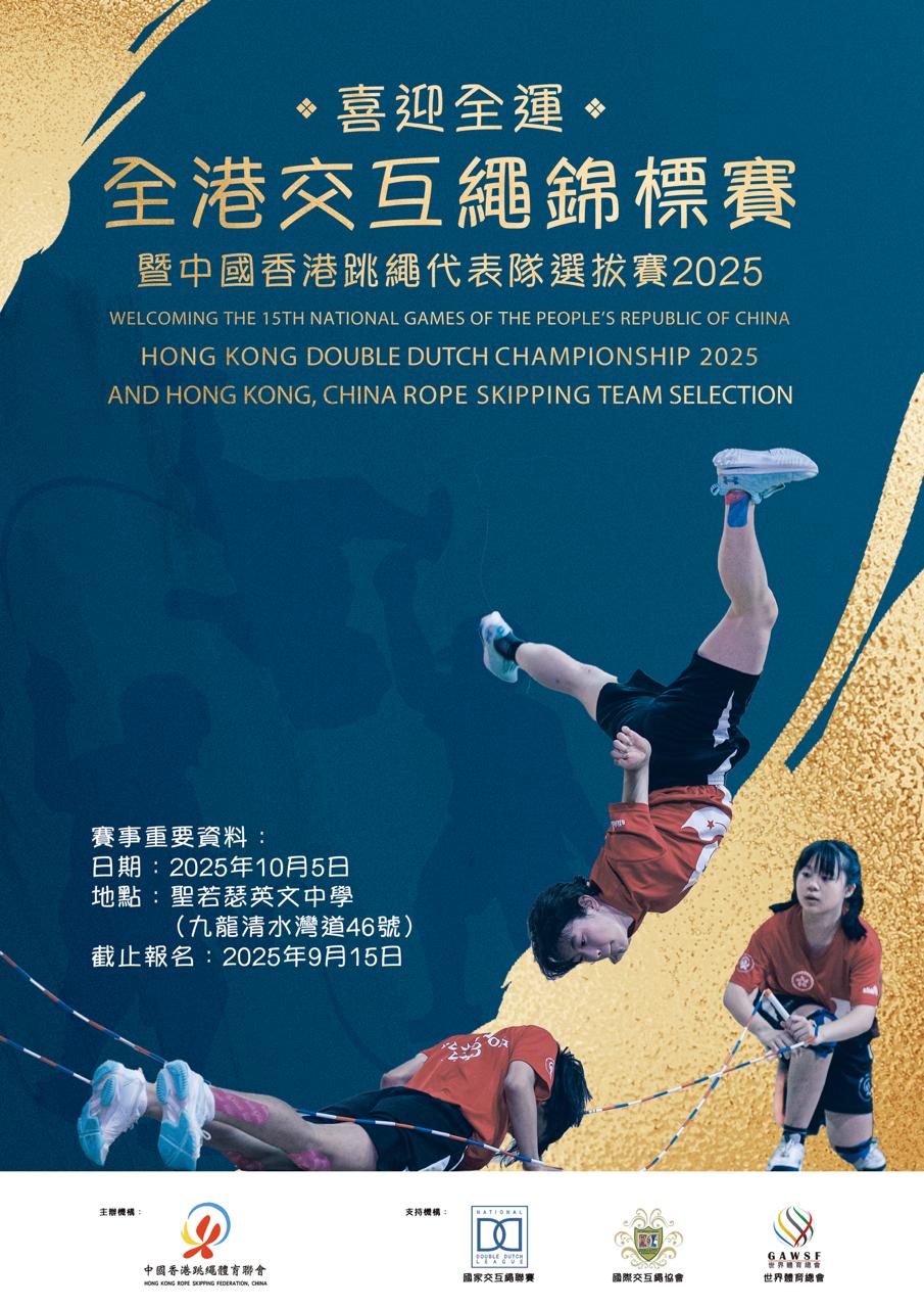 精英賽事 喜迎全運 – 全港交互繩錦標賽暨中國香港跳繩代表隊選拔賽2025 喜迎全運 – 全港交互繩錦標賽暨中國香港跳繩代表隊選拔賽2025 中國香港跳繩體育聯會將於 2025 年 10 月 5 日舉辦《 閱讀更多 »