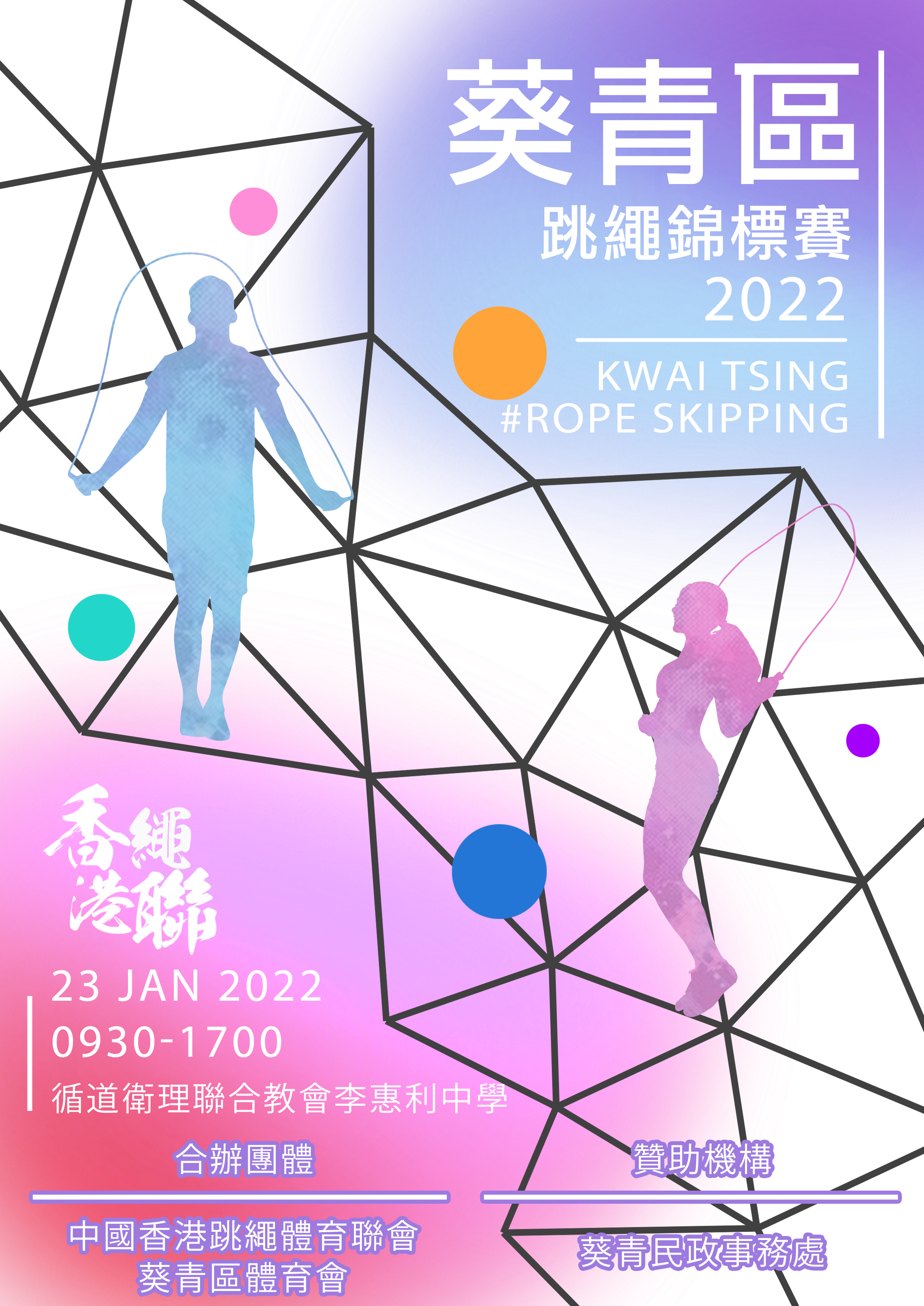由葵青區體育會、中國香港跳繩體育聯會合辦、葵青區議會贊助的「葵青區跳繩錦 標賽 2019」將於 11 月 9 日進行,賽事不但為葵青區中小學生提供交流平台互相學習切 磋,培養他們團結合作的精神,同時透過親子組的比賽項目進一步促進葵青區市民親 子關係,加強葵青區的跳繩風氣,營造健康積極的運動氛圍,推動跳繩運動普及化。