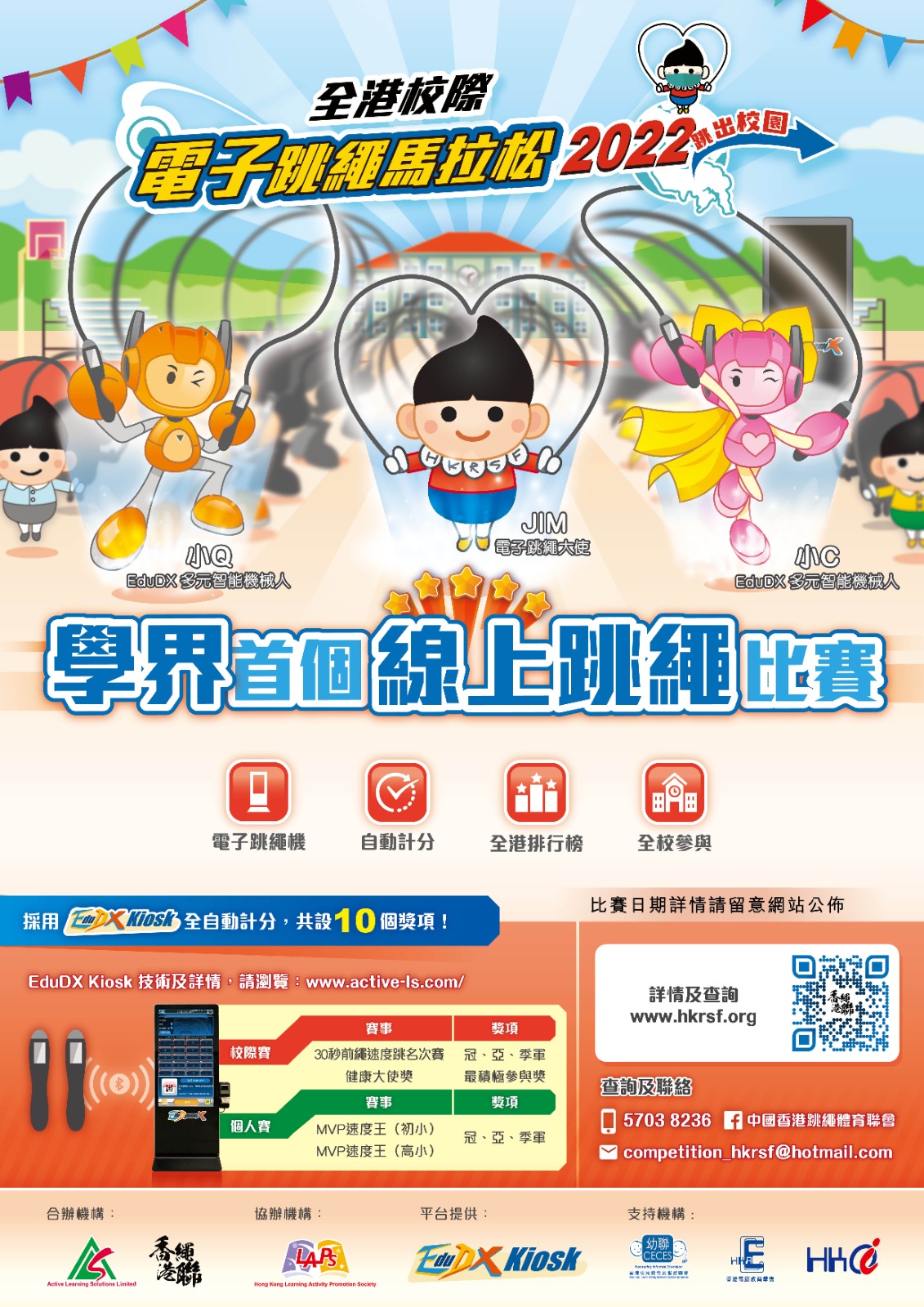 中國香港跳繩體育聯會聯同香港欣學教育科技有限公司舉辦「全港校際電子跳繩馬拉松2021」,在使用EduDX Kiosk電子技術平台下,將成為全港首個結合電子科技的跳繩比賽,運動員可於學校內進行跨校比賽、查看即時成績、一Click即跳。在維持社交距離下仍能繼續跳繩比賽,目的除了是為一眾受影響的運動員提供比賽平台外,更有著鼓勵香港人於疫情中保持正面的意義。