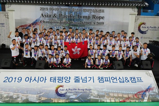 香港跳繩「摩打腳」剛在仁川舉行的亞太賽,共袋走32金30銀35銅的獎牌,突破了上屆31金的成績,其中13歲的黃靖桐更一人擸走5金,成為港隊之冠!